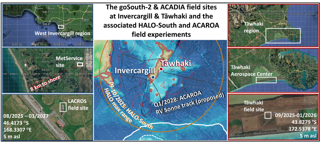 An essential project that is related to the goSouth-2 experiment is ACADIA (Aerosol-Cloud Interactions in Aotearoa New Zealand). In the framework of ACADIA, additional remote sensing observations have been performed on the premises of the Tāwhaki Aerospace Center, about 50 km south of Christchurch.